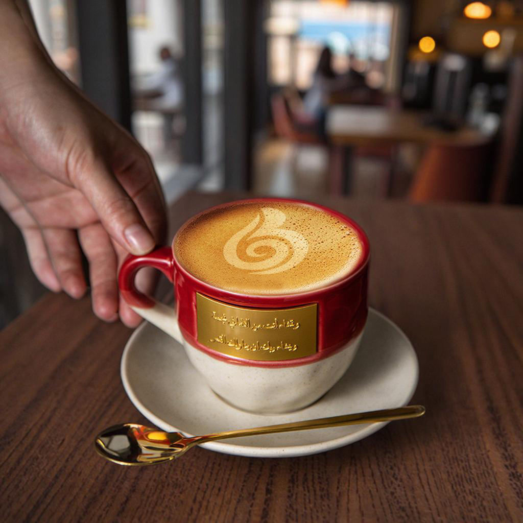 15oz Ceramic Coffee Cup with Middle East Style Copper Slogan