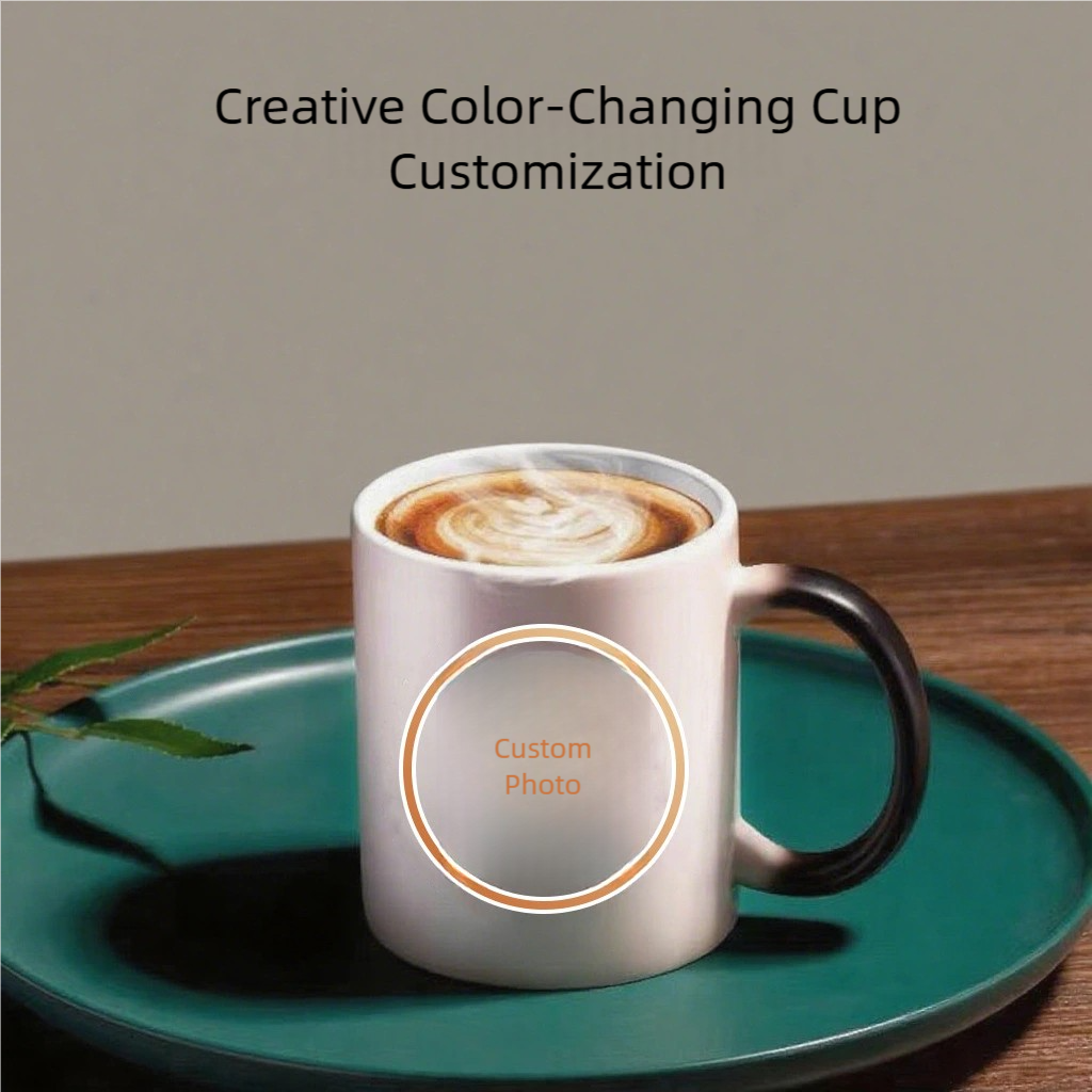Heat-sensitive matte black mug reveals full-color artwork with hot liquid; optimized AAA sublimation coating for crisp transfers.